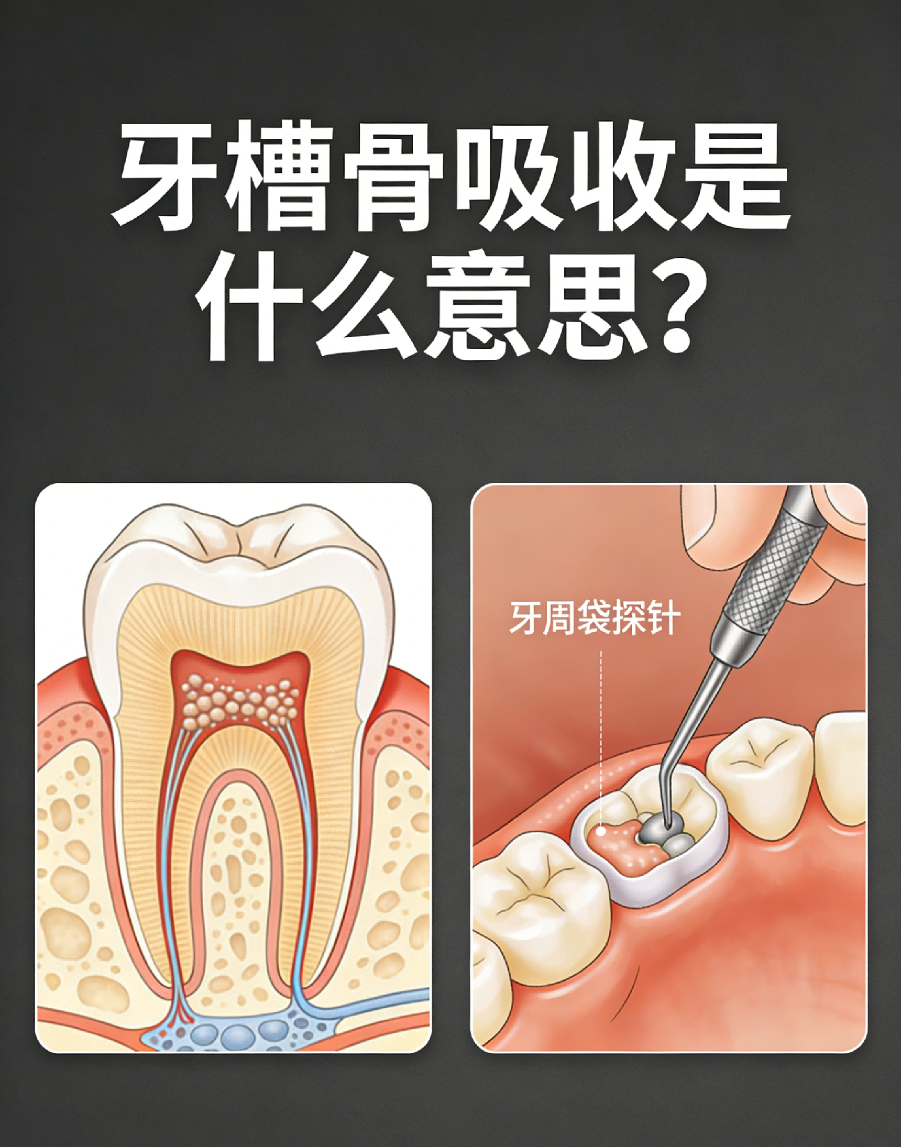牙槽骨吸收是指包围和支持牙根的骨组织因各种原因发生高度降低和密度减少的病理过程。牙槽骨是牙齿赖以生存的土壤,它的健康直接决定牙齿的稳固。