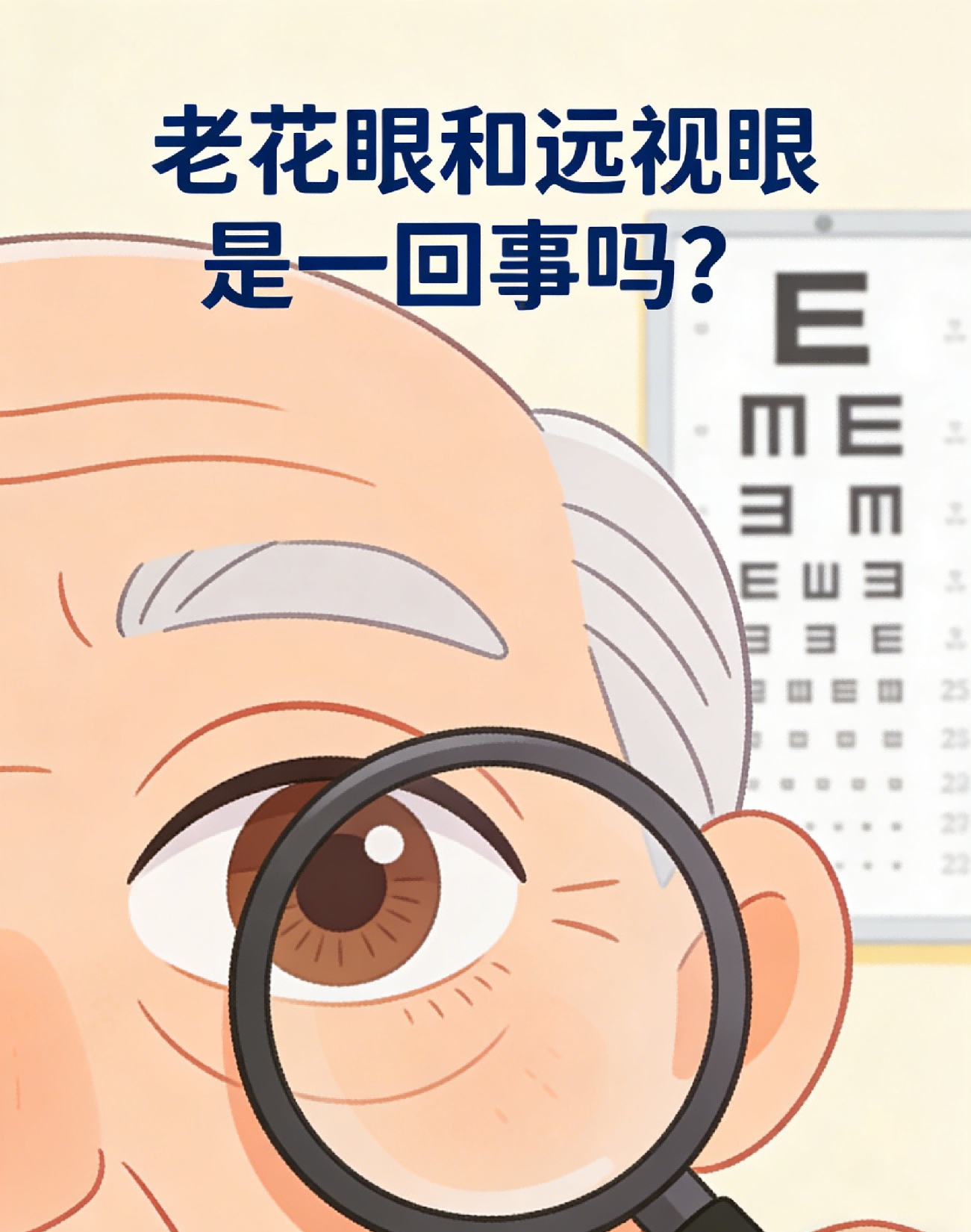 老花眼和远视眼不是一回事,二者的发病原因、症状表现和发病人群都有明显区别。