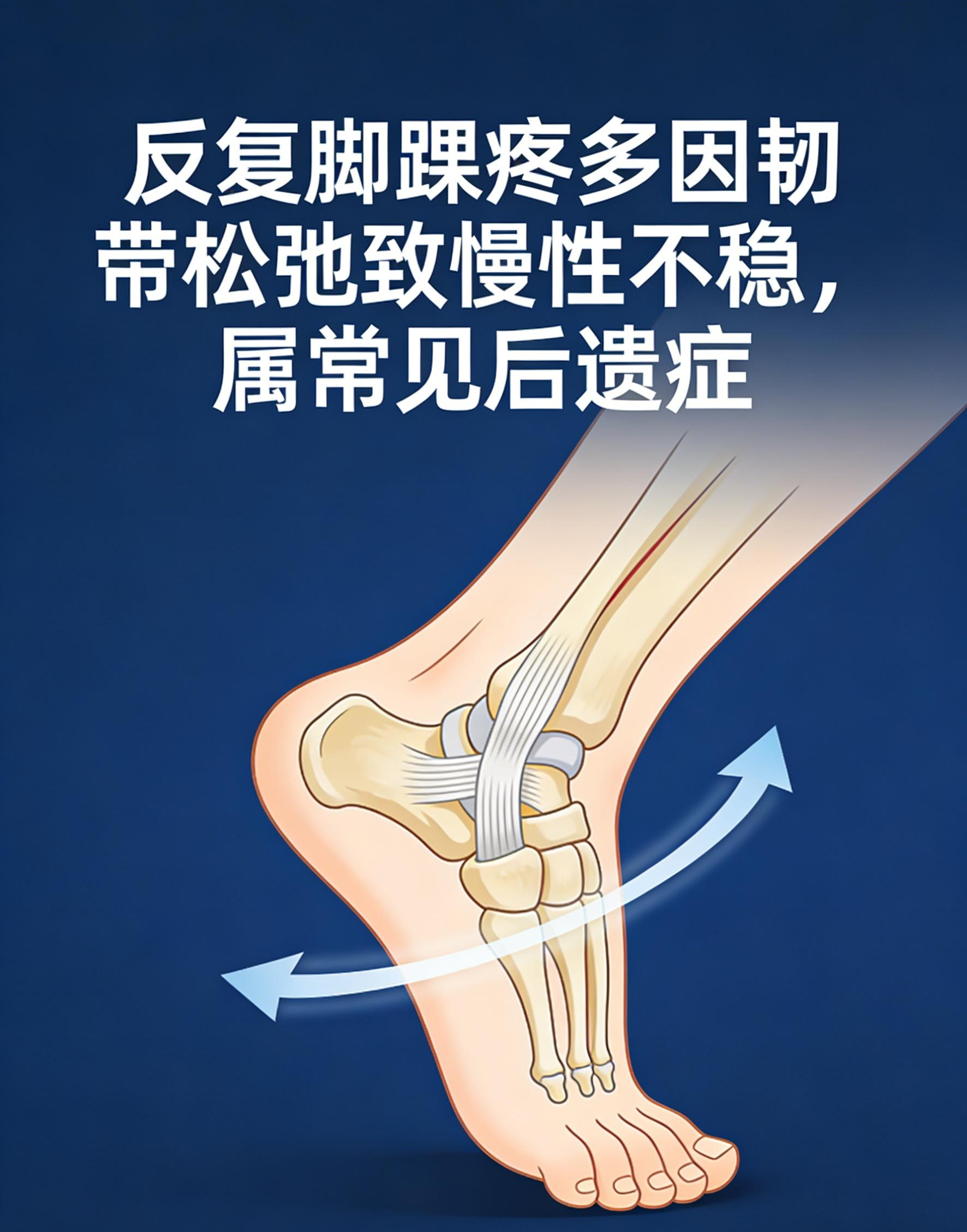 反复脚踝疼多因韧带松弛致慢性不稳,属常见后遗症。