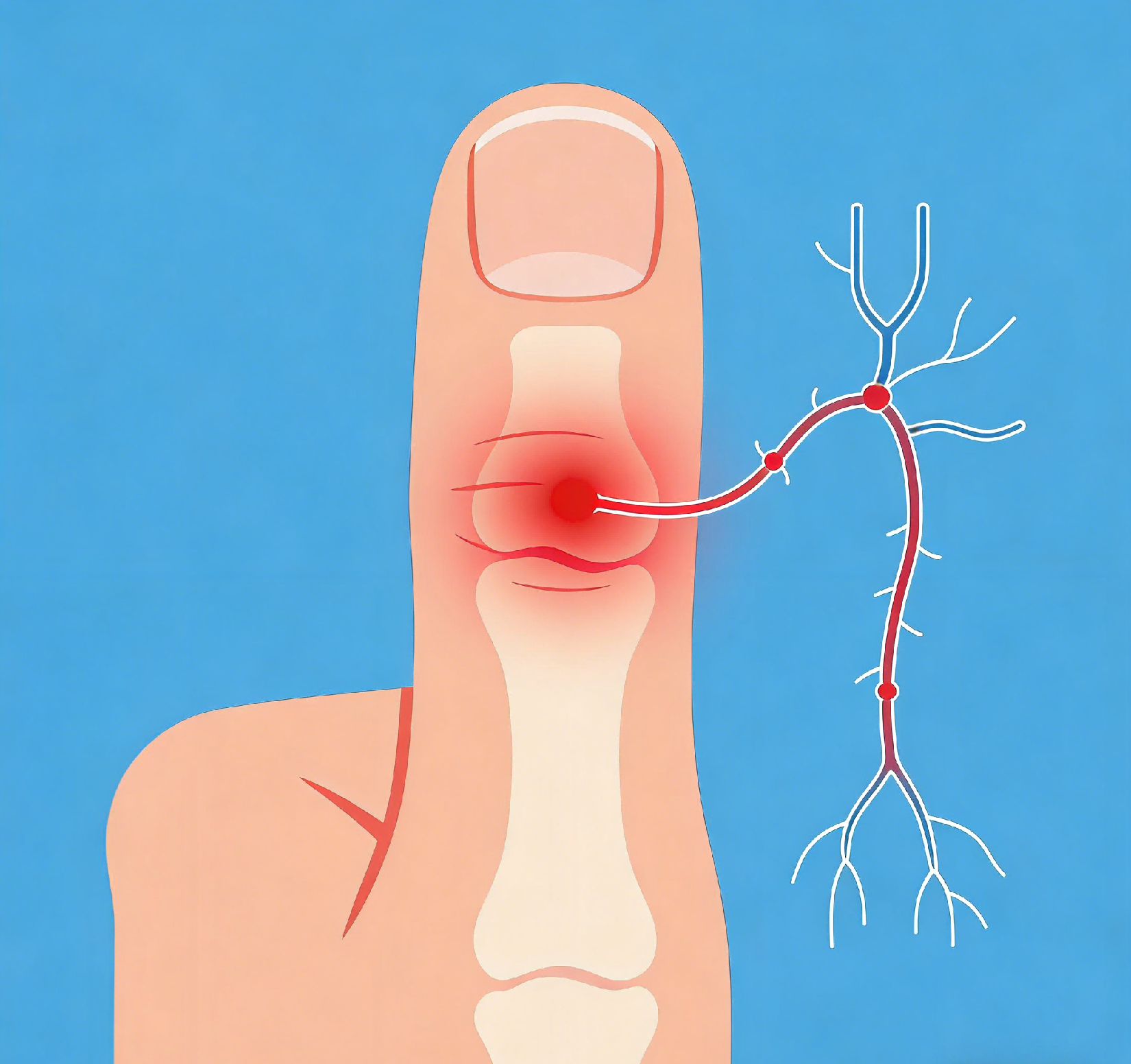 5、神经卡压:如腕管综合征,压迫支配大拇指的神经,出现疼痛麻木,需解除神经卡压。