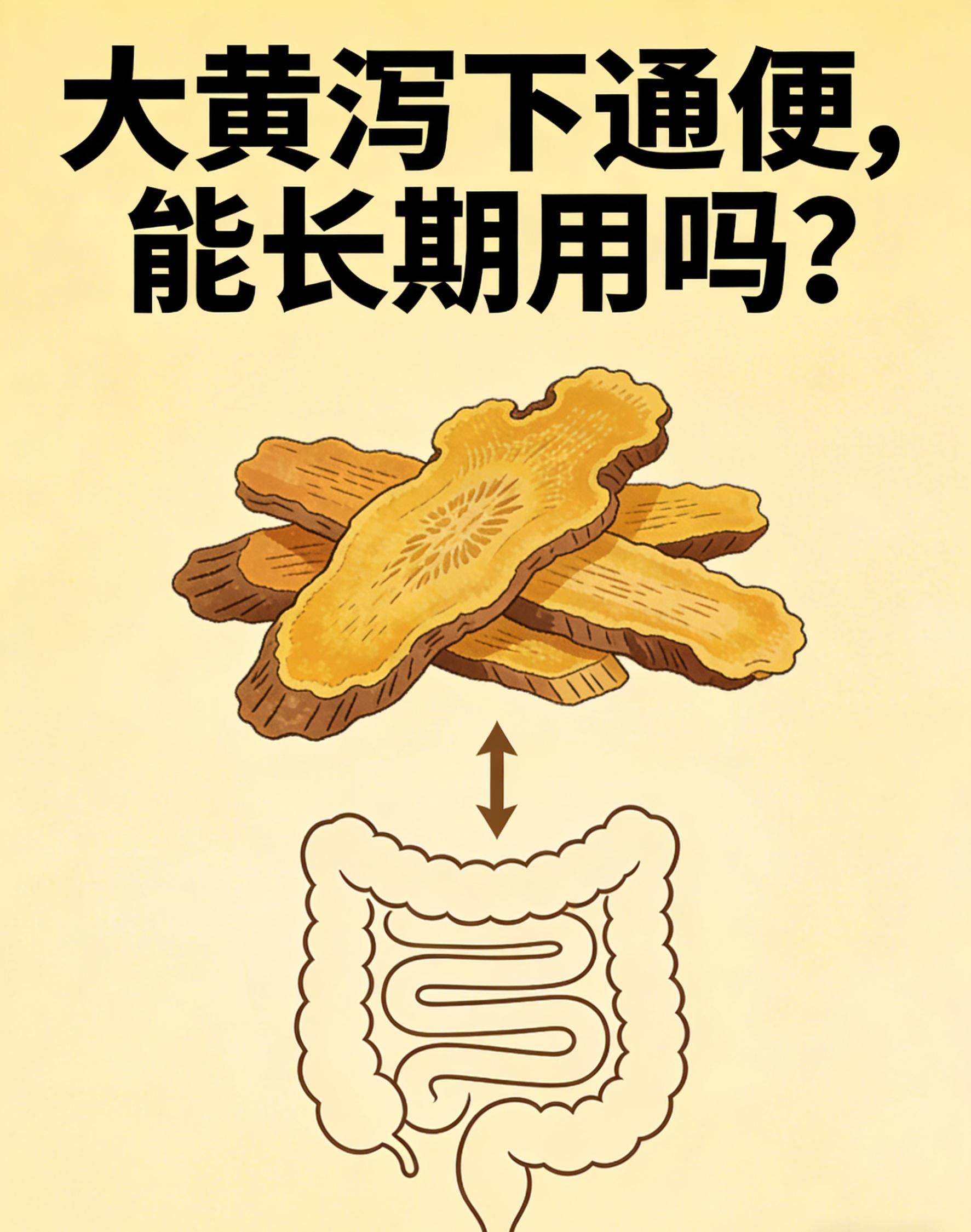 因此,大黄仅可短期(不超过1周)对症使用,不可作为日常通便药。慢性便秘应从调整生活方式入手,多喝水、多吃膳食纤维、规律运动。必要时在医生指导下使用温和通便药。大黄是把双刃剑,用对是药,用错是毒。