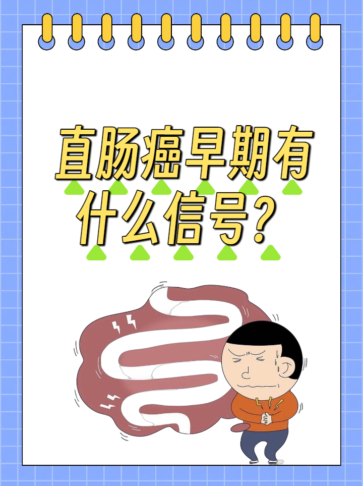 直肠癌早期信号有便血、排便习惯改变、粪便形状改变、肛门坠胀感、腹部隐痛,这些信号易被忽视,早发现早治疗可提高治愈率。