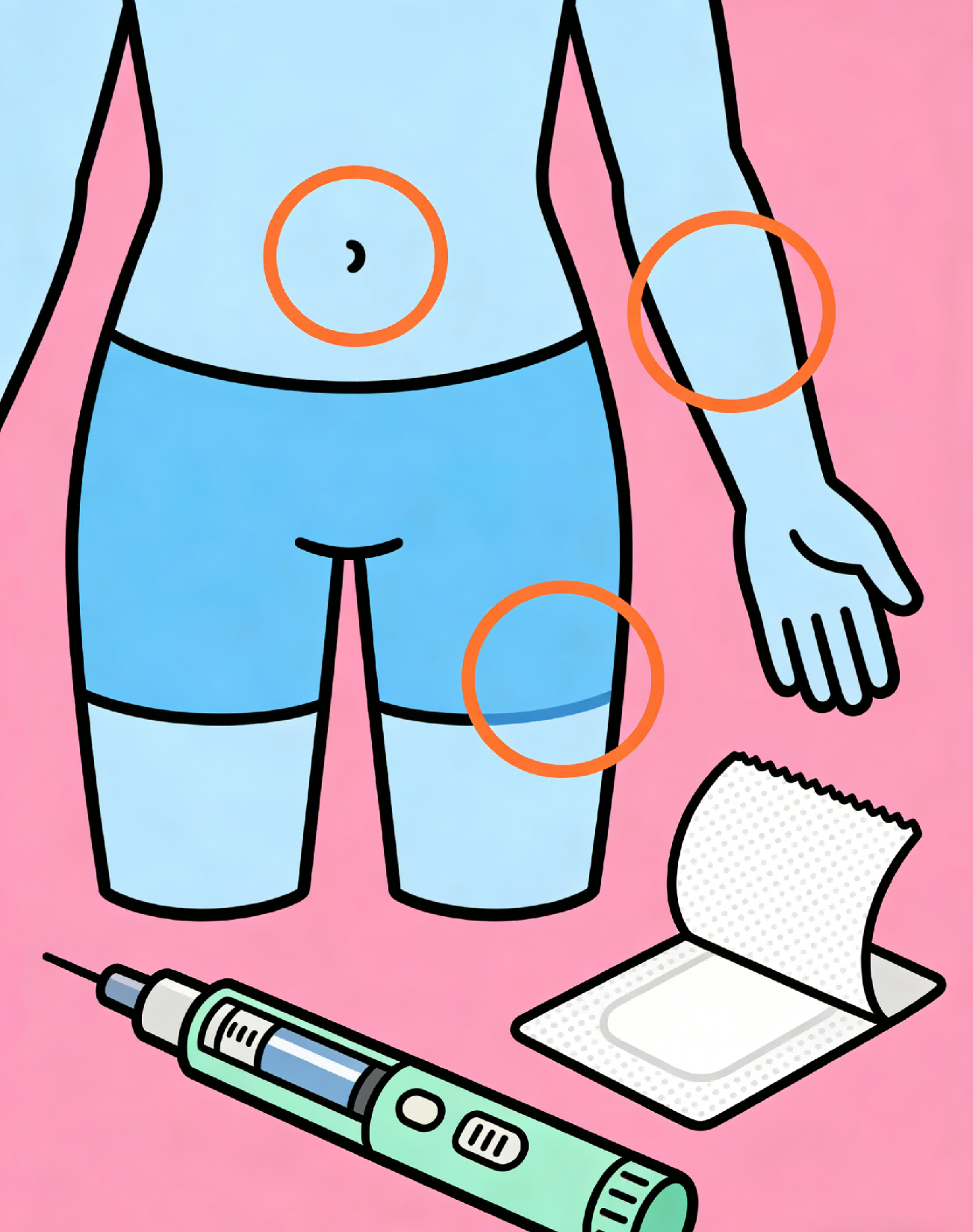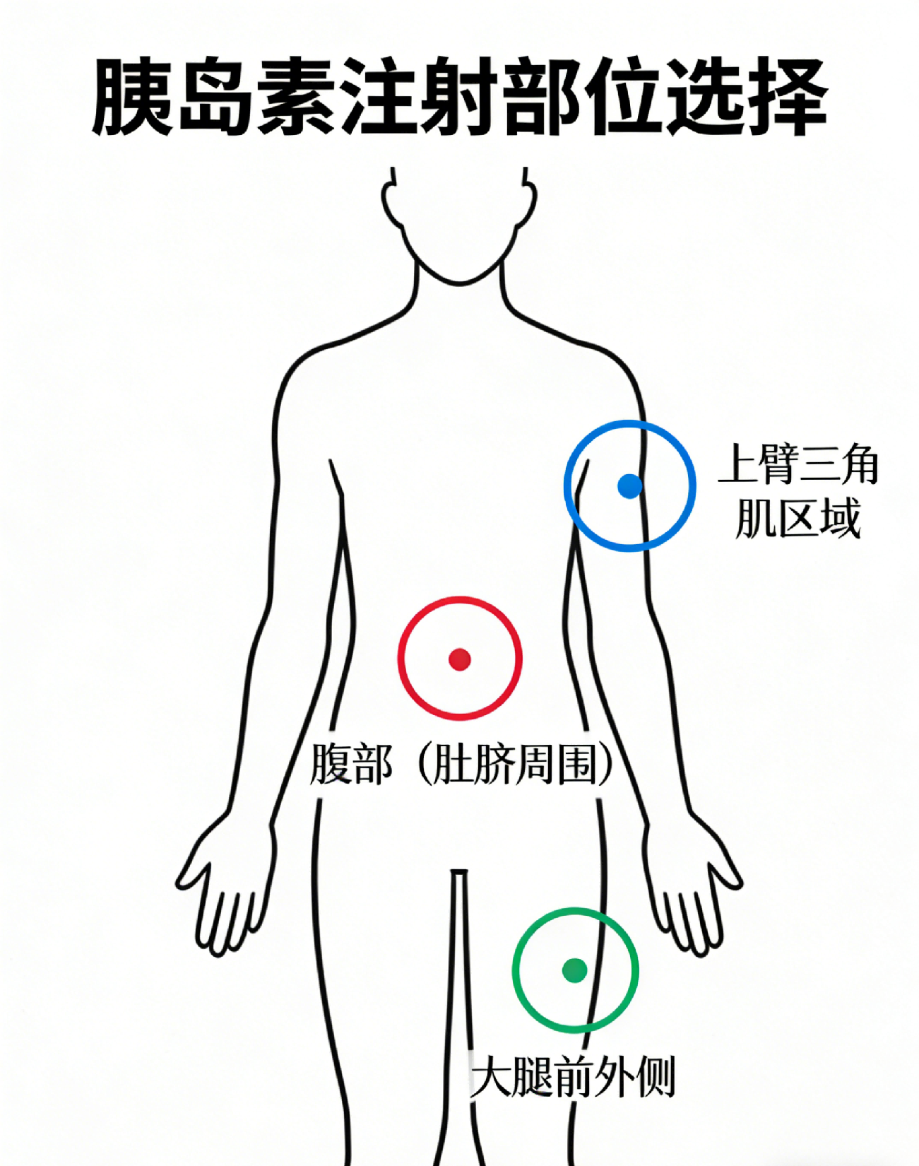 腹部是优先选择的部位,胰岛素吸收速度最快且稳定,适合短效、速效胰岛素,注射时需避开肚脐周围5厘米。