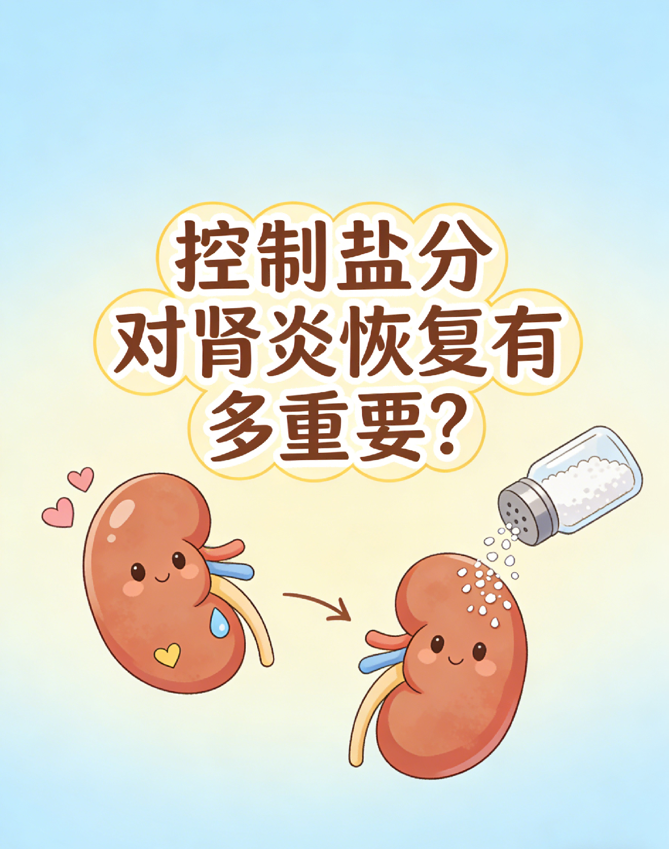 控制盐分摄入,能有效减轻肾脏负担,缓解水肿、高血压症状,为肾脏修复创造良好环境,促进肾炎恢复,降低病情复发风险。