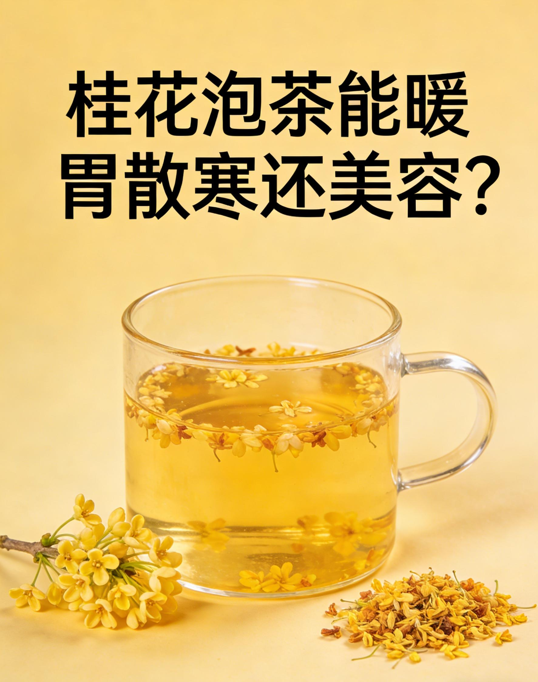 桂花泡茶确实能暖胃散寒,辅助美容。它性温,味辛,归肺、脾、肾经,能温中散寒、暖胃止痛、化痰散瘀。对胃寒所致的胃痛、腹胀、食欲不振有缓解作用。