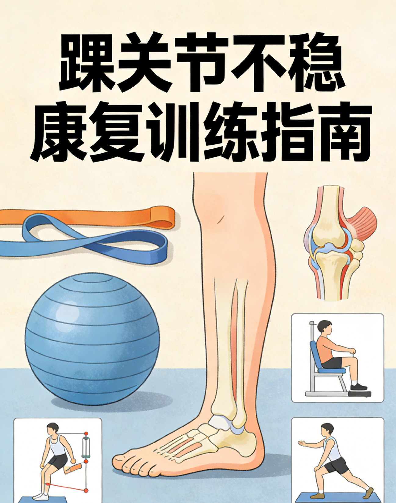 训练循序渐进,从无痛动作开始,坚持4~8周,能明显改善不稳状态。配合护踝保护,逐步恢复正常运动,降低再次扭伤风险。