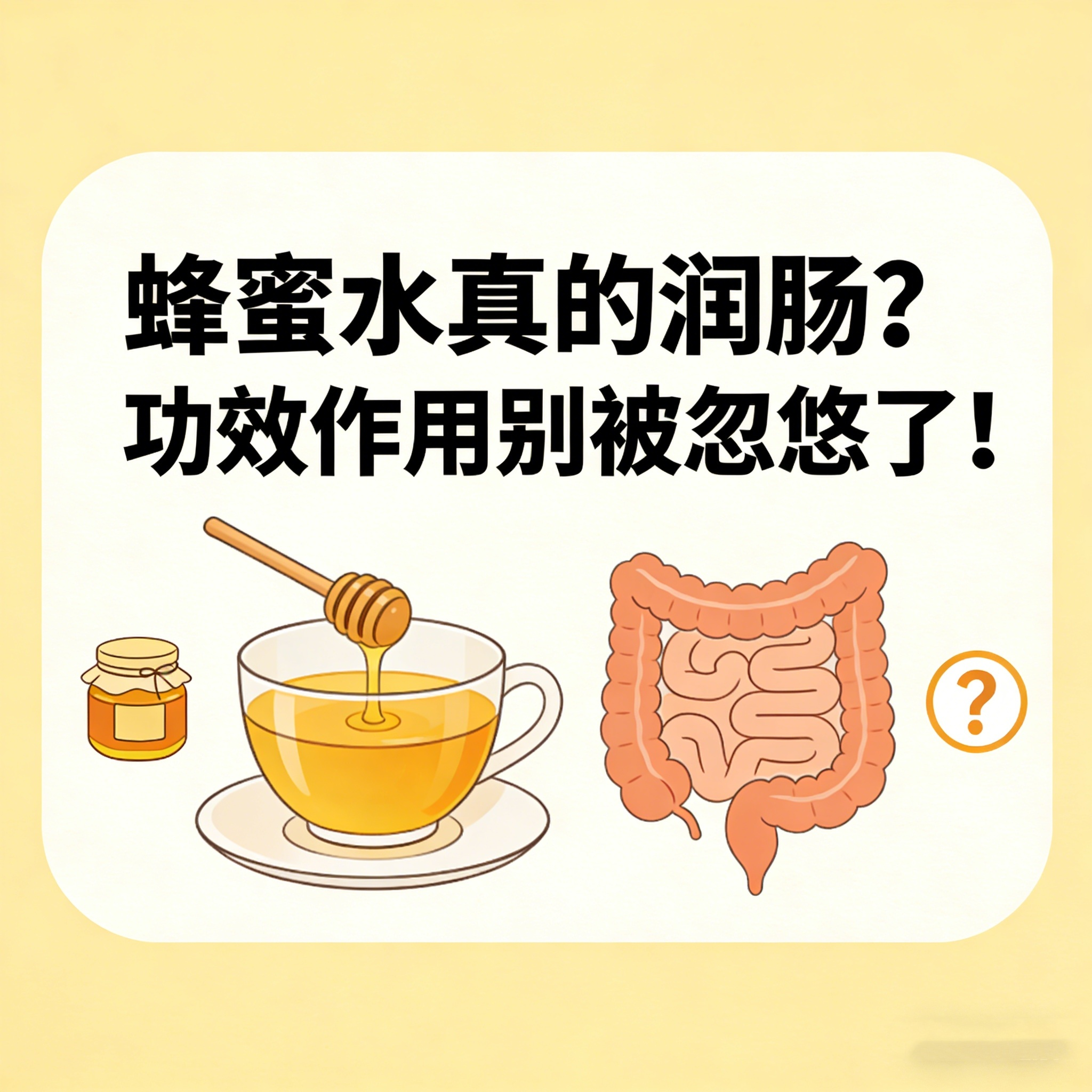 蜂蜜水对部分人有润肠作用,主要源于果糖不耐受导致的渗透性腹泻,并非真正“调理肠道”。对果糖吸收正常的人,蜂蜜水通便效果与白开水无异。且蜂蜜含大量葡萄糖和果糖,热量高,长期大量饮用反增负担。