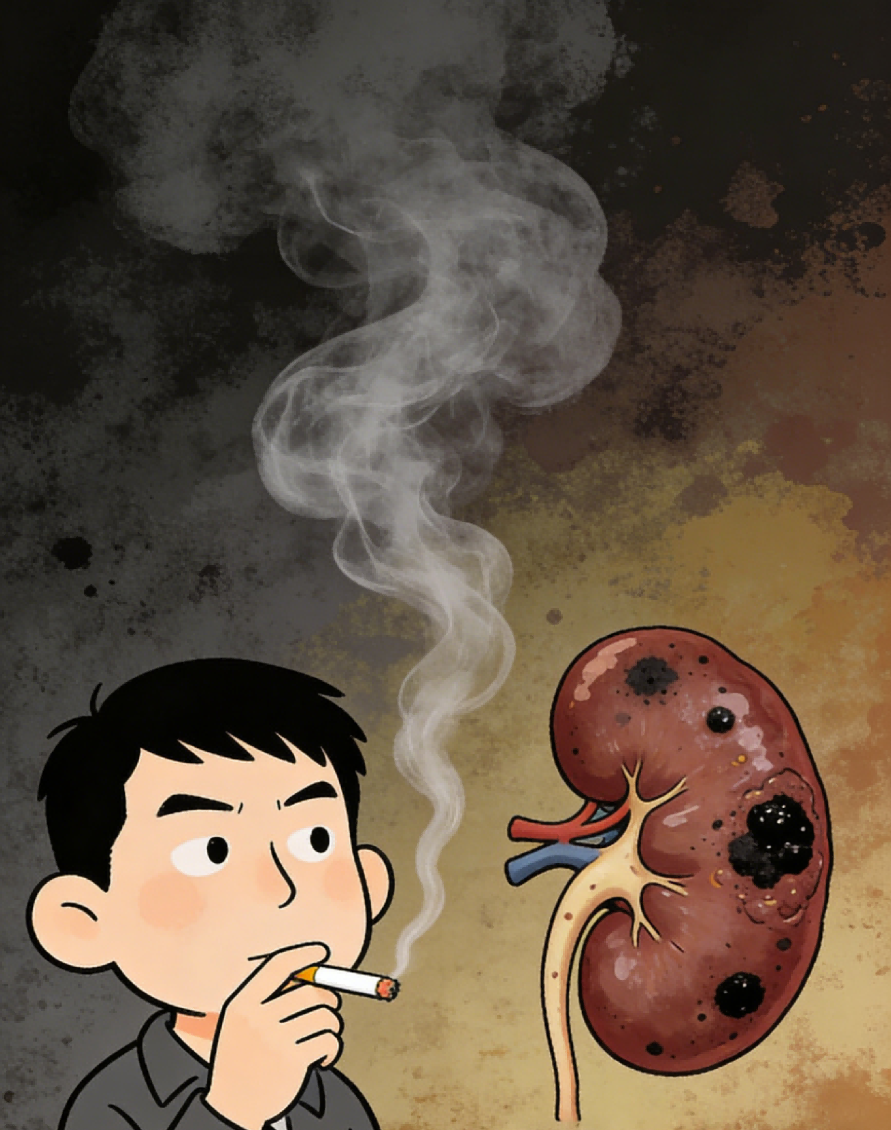 香烟中的尼古丁、焦油等有害物质,会损伤全身血管,包括肾脏血管,导致肾脏缺血、缺氧,加重肾小球损伤,使尿蛋白增多、肾功能下降。同时,抽烟会升高血压、加重胰岛素抵抗,进一步恶化血糖控制,形成“抽烟-血压血糖升高-肾脏损伤”的恶性循环。
