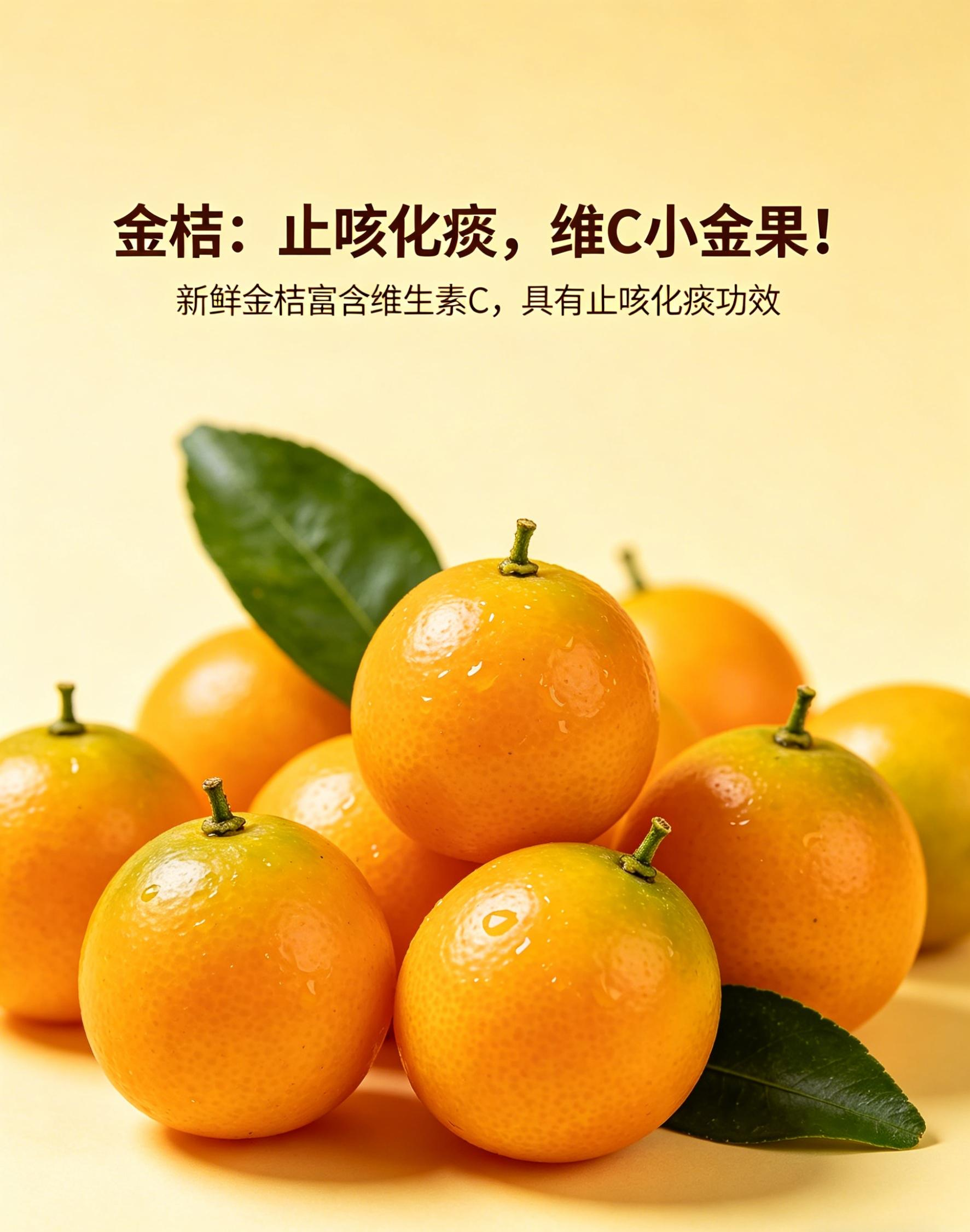 金桔是一种止咳化痰的优质食材,它富含维生素C和多种生物活性成分,有助于增强免疫力、促进呼吸道健康。同时,金桔还具有香甜可口的口感,可满足人们的味蕾需求。但金桔性温,体质偏热者需慎食。同时,止咳化痰的效果因人而异,需长期坚持食用并配合其他治疗措施。