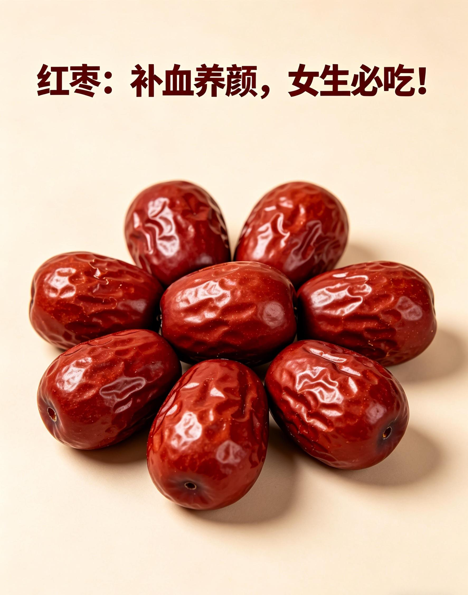 红枣富含铁元素,能促进血红蛋白合成,改善贫血;维生素C可促进铁吸收,增强补血效果;还含多种抗氧化物质,能减少自由基对皮肤伤害,延缓衰老。此外,红枣中的环磷酸腺苷能调节新陈代谢,增强免疫力。