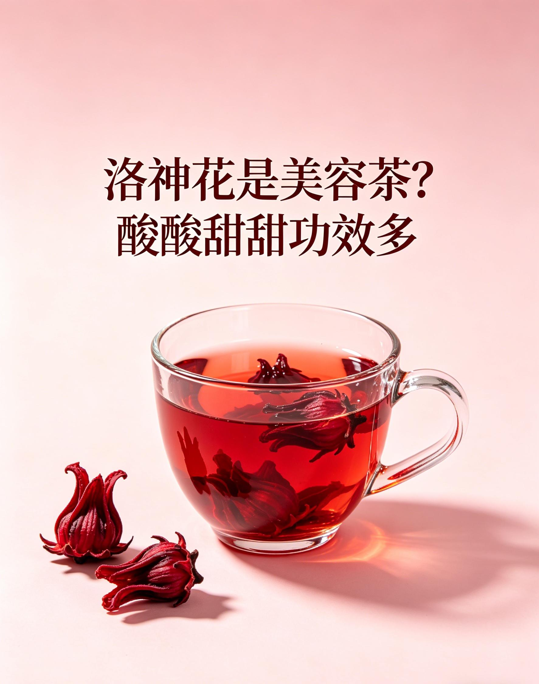 洛神花(玫瑰茄)富含花青素、维生素C、有机酸,有抗氧化、降血脂、辅助降压作用。美容养颜源于抗氧化清除自由基,而非直接美白。酸甜开胃,助消化、解油腻。常与山楂、陈皮同泡。适合夏季消暑、餐后解腻。