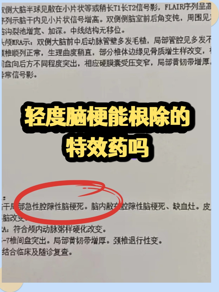 目前无药物能彻底“根除”脑梗,轻度脑梗需规范治疗以防复发,而非单纯消除病灶。