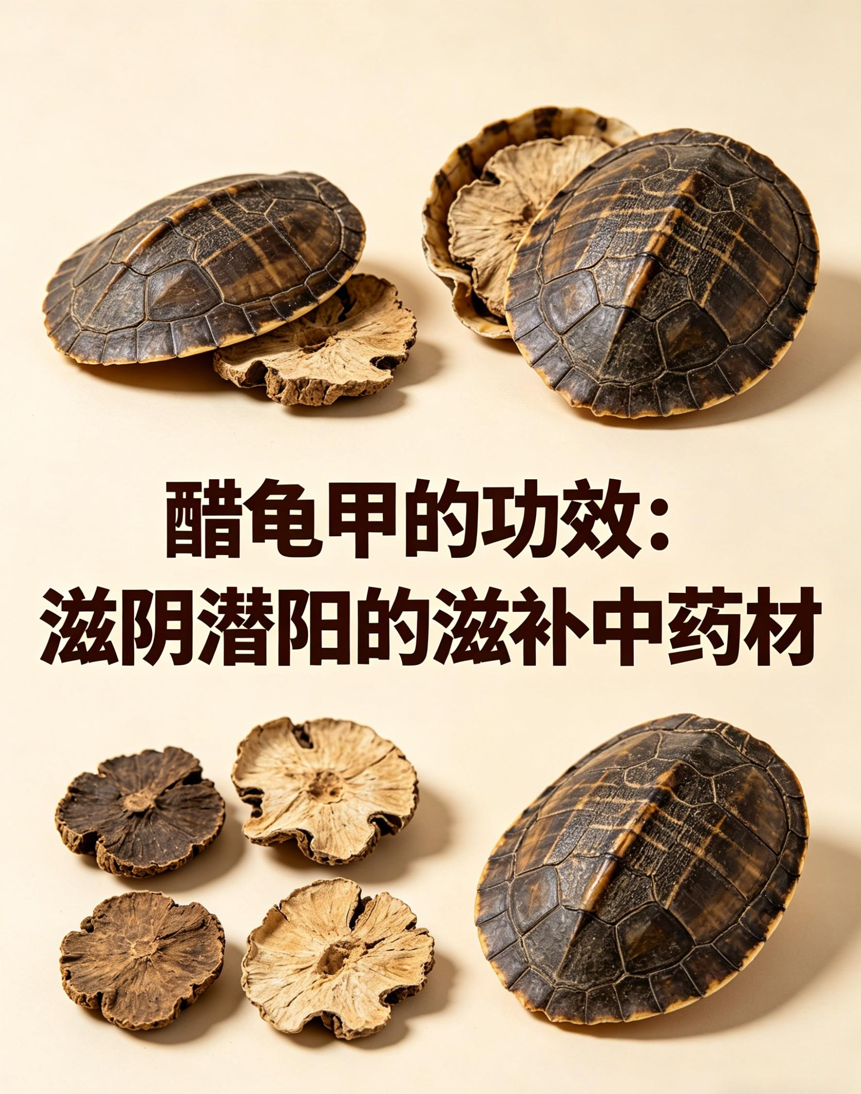 醋龟甲性微寒味咸甘,归肝、肾、心经。醋制后增强滋阴潜阳作用。核心功效滋阴潜阳、益肾强骨、养血补心。主治阴虚潮热、骨蒸盗汗、头晕目眩;肾虚筋骨痿软;心血不足所致心悸失眠、健忘。对小儿囟门不合、妇女崩漏带下有效。