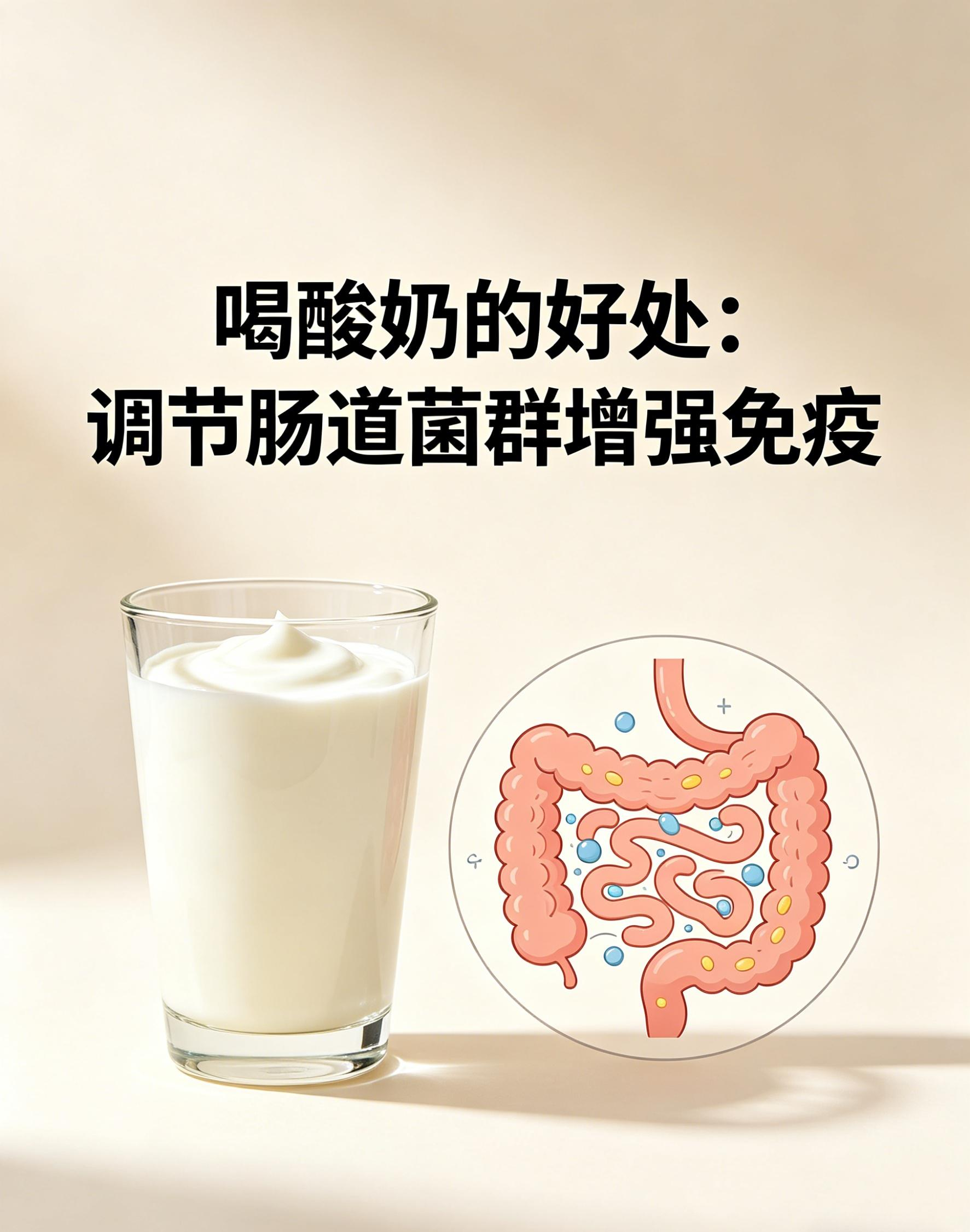 酸奶含活性益生菌,核心好处:调节肠道菌群平衡,抑制有害菌,改善便秘或腹泻;增强免疫力;促进乳糖消化;促进钙、镁吸收;提供优质蛋白和B族维生素。长期喝酸奶可降低2型糖尿病、心血管病风险。
