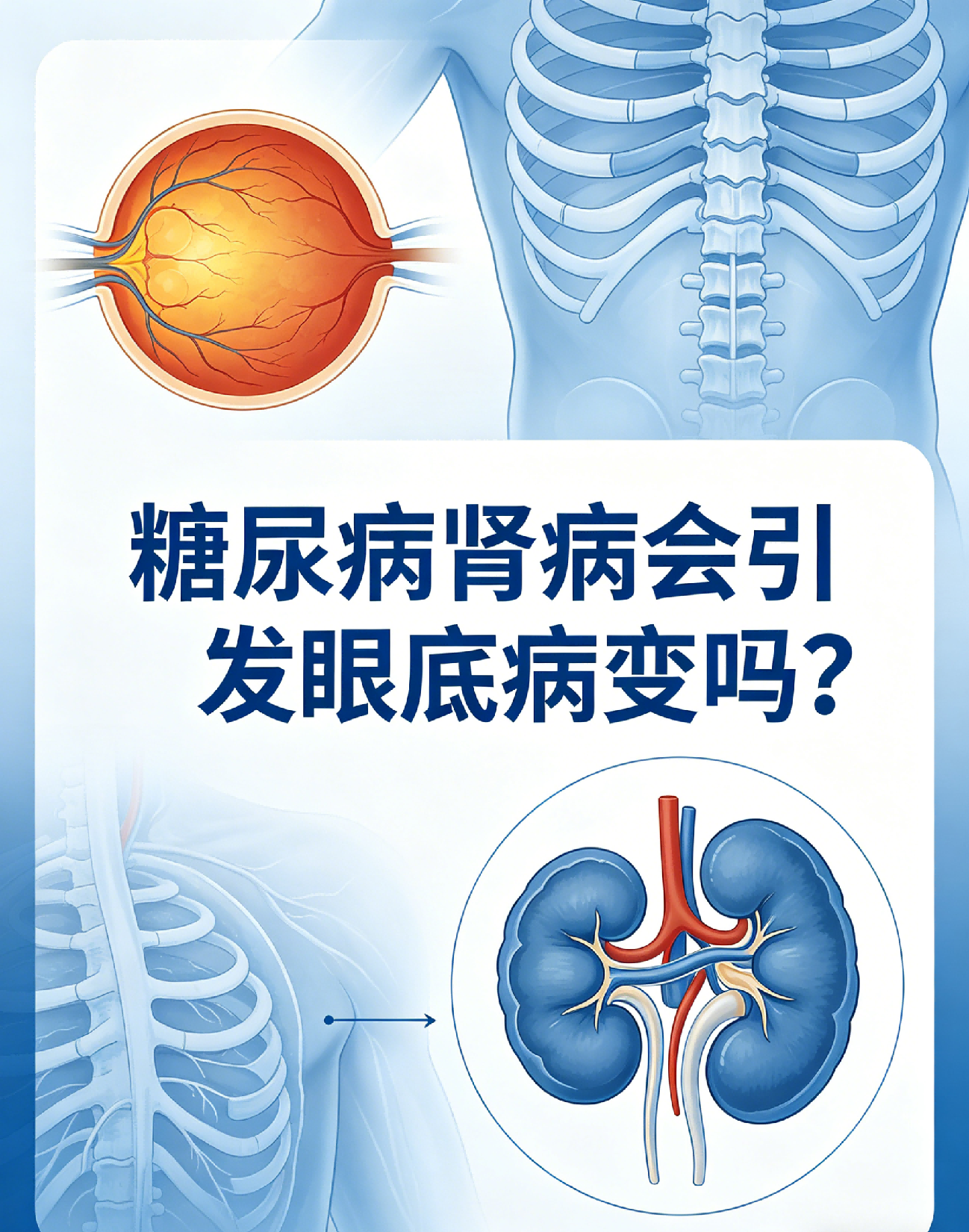 糖尿病肾病会引发眼底病变,两者同属糖尿病微血管并发症,长期高血糖损伤全身微血管,既会损伤肾脏,也会损伤眼底血管,严重时可导致失明。