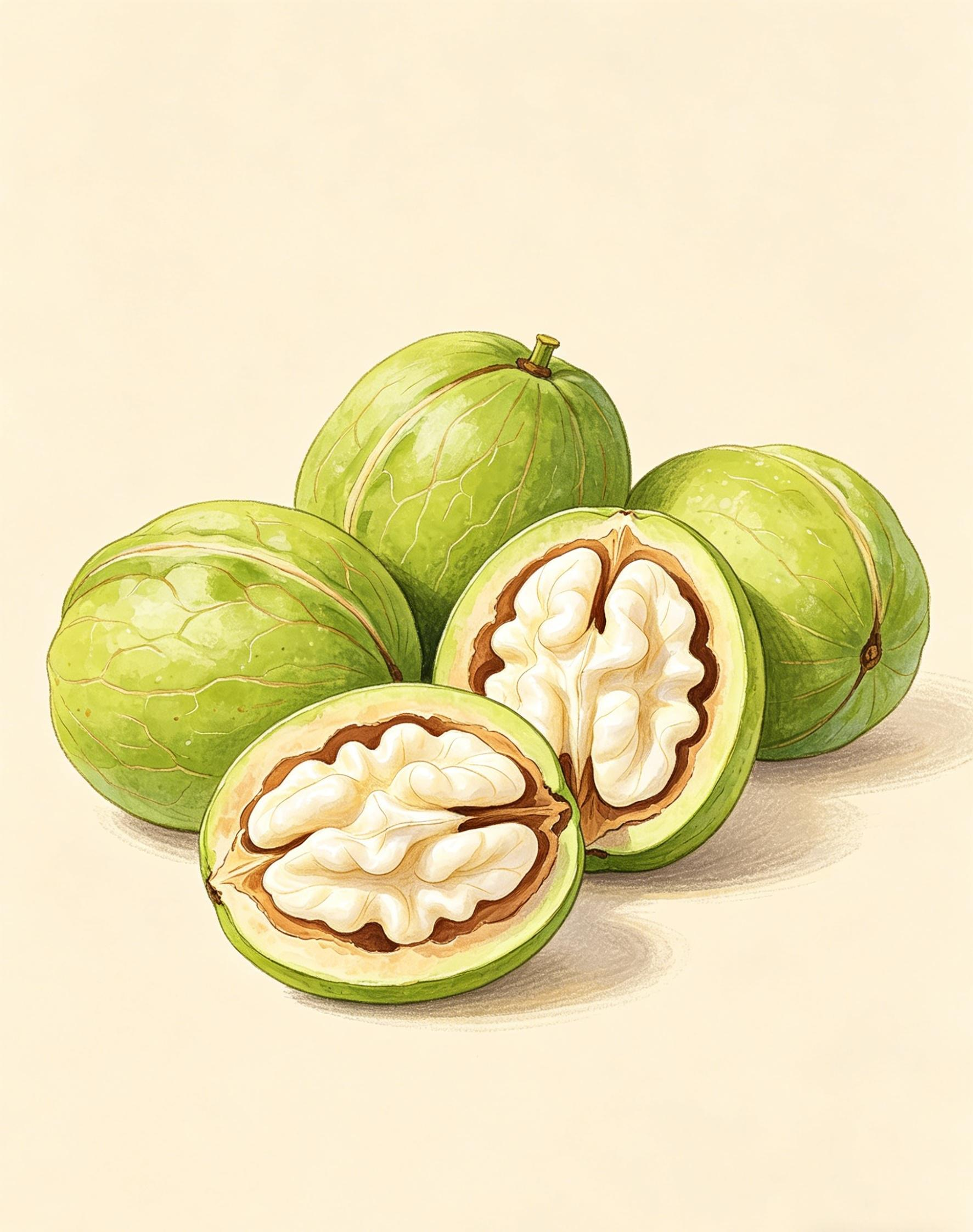 其含α-亚麻酸、维生素E等成分,能促进大脑发育,改善记忆力,同时清除自由基,延缓衰老。但鲜核桃性温,过量食用可能导致口干、便秘,阴虚火旺者需慎用。剥壳时需避免指甲接触果肉,防止氧化变色。