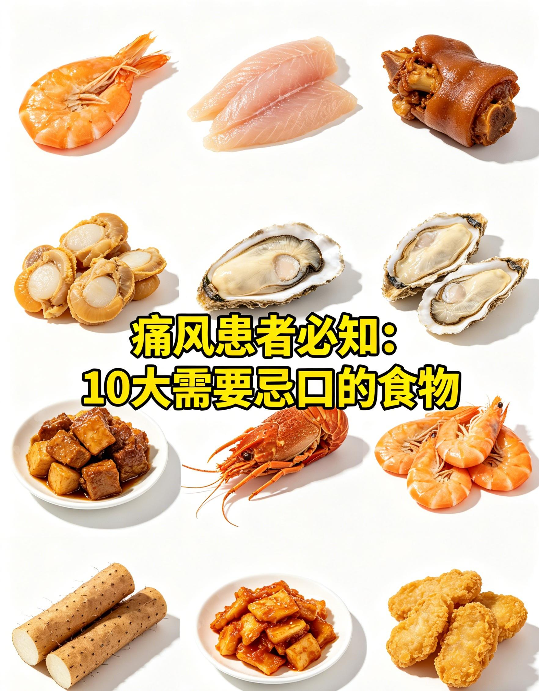 痛风患者应严格避开十类高嘌呤或促尿酸升高的食物,以防病情加重。