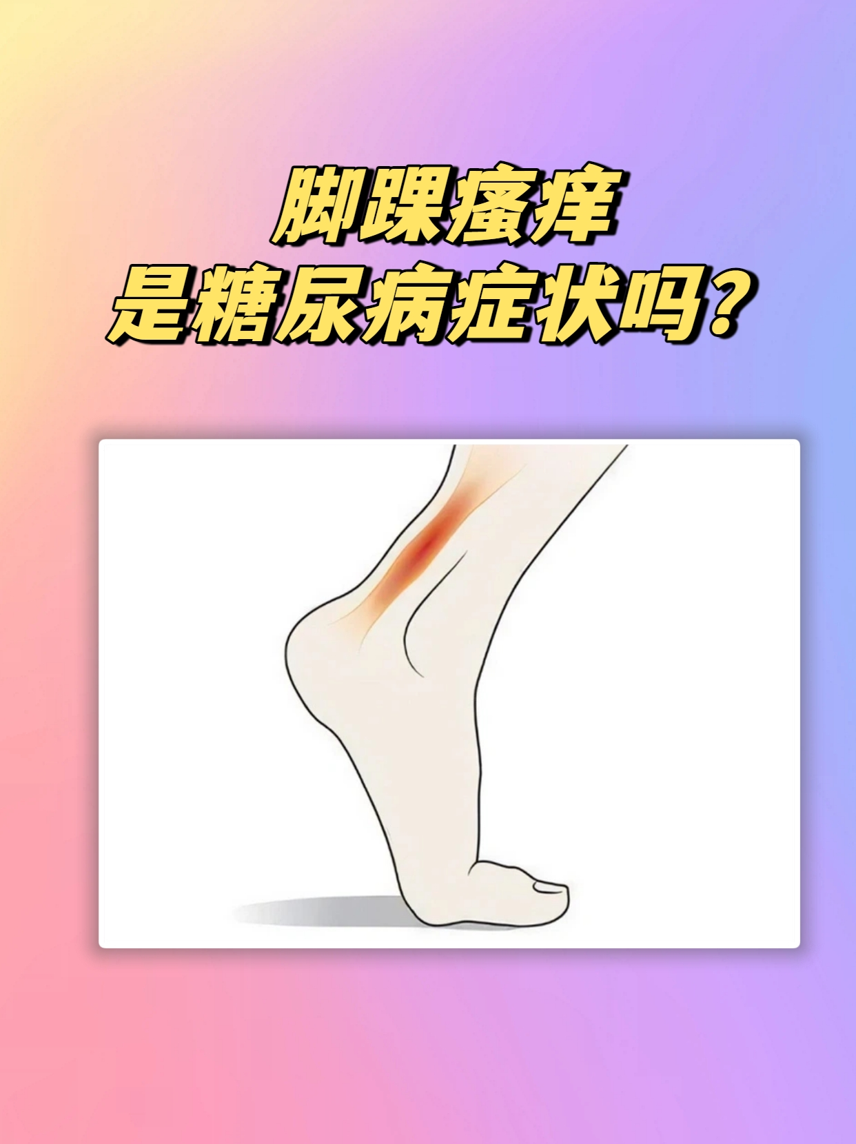 脚踝瘙痒本身不是糖尿病典型症状,但长期高血糖可致皮肤干燥、真菌感染或神经病变,间接引起瘙痒,需排查原因。