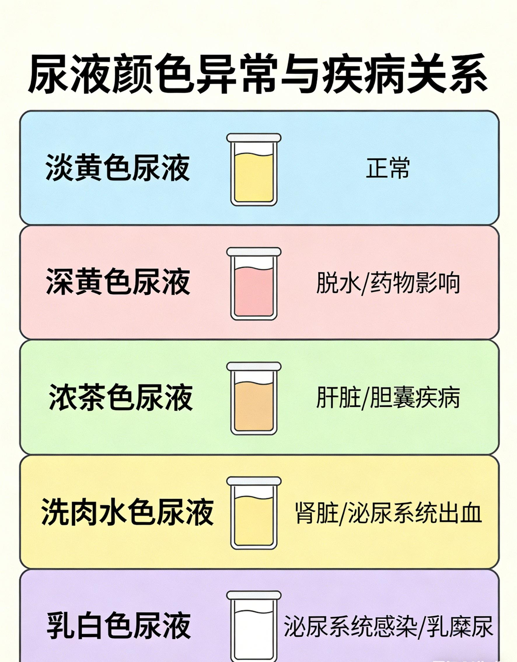 尿液颜色是肾脏健康的“晴雨表”,异常颜色可能提示肾脏或泌尿系统疾病。