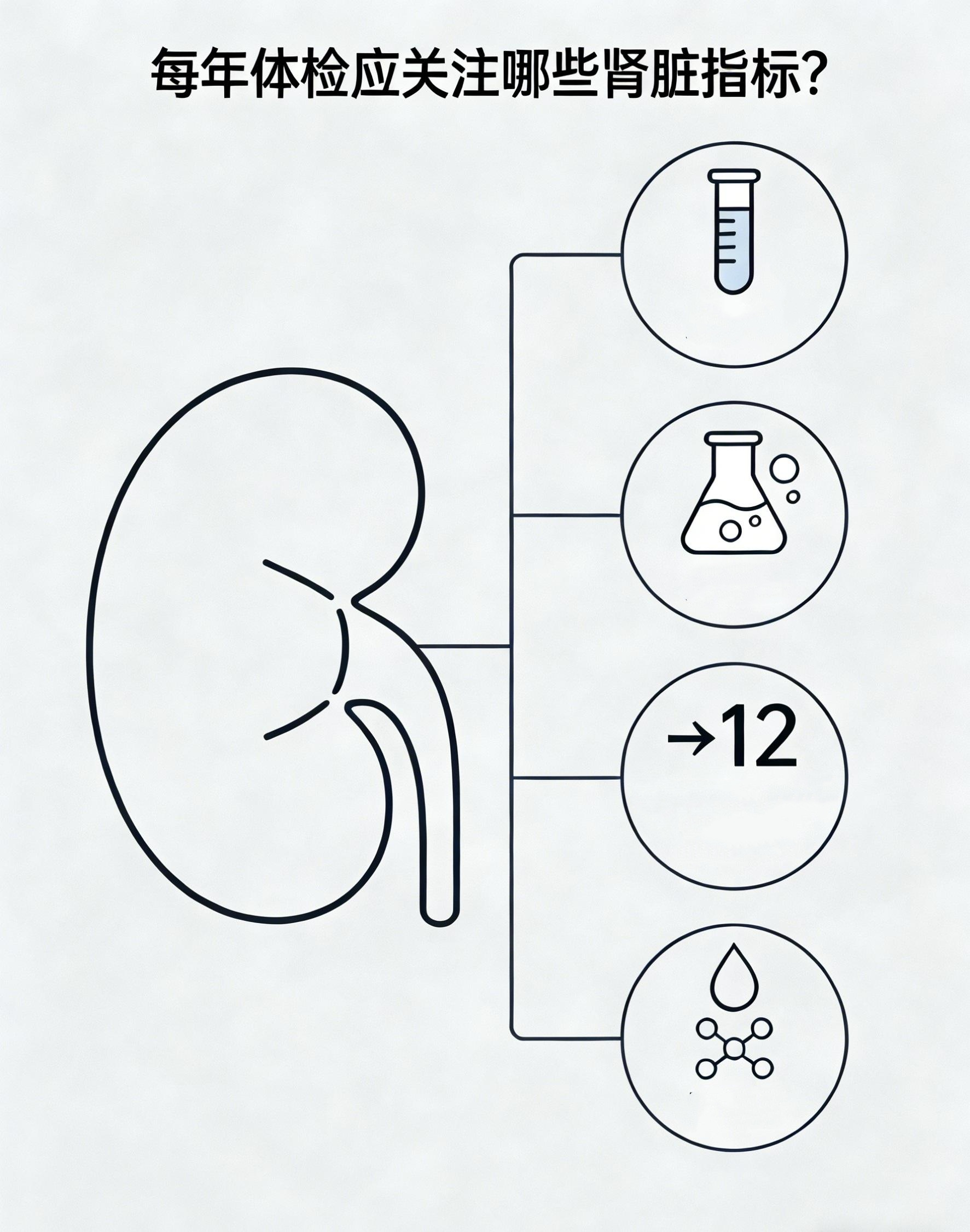 每年体检需重点关注肾脏相关指标,以早期发现肾脏疾病。