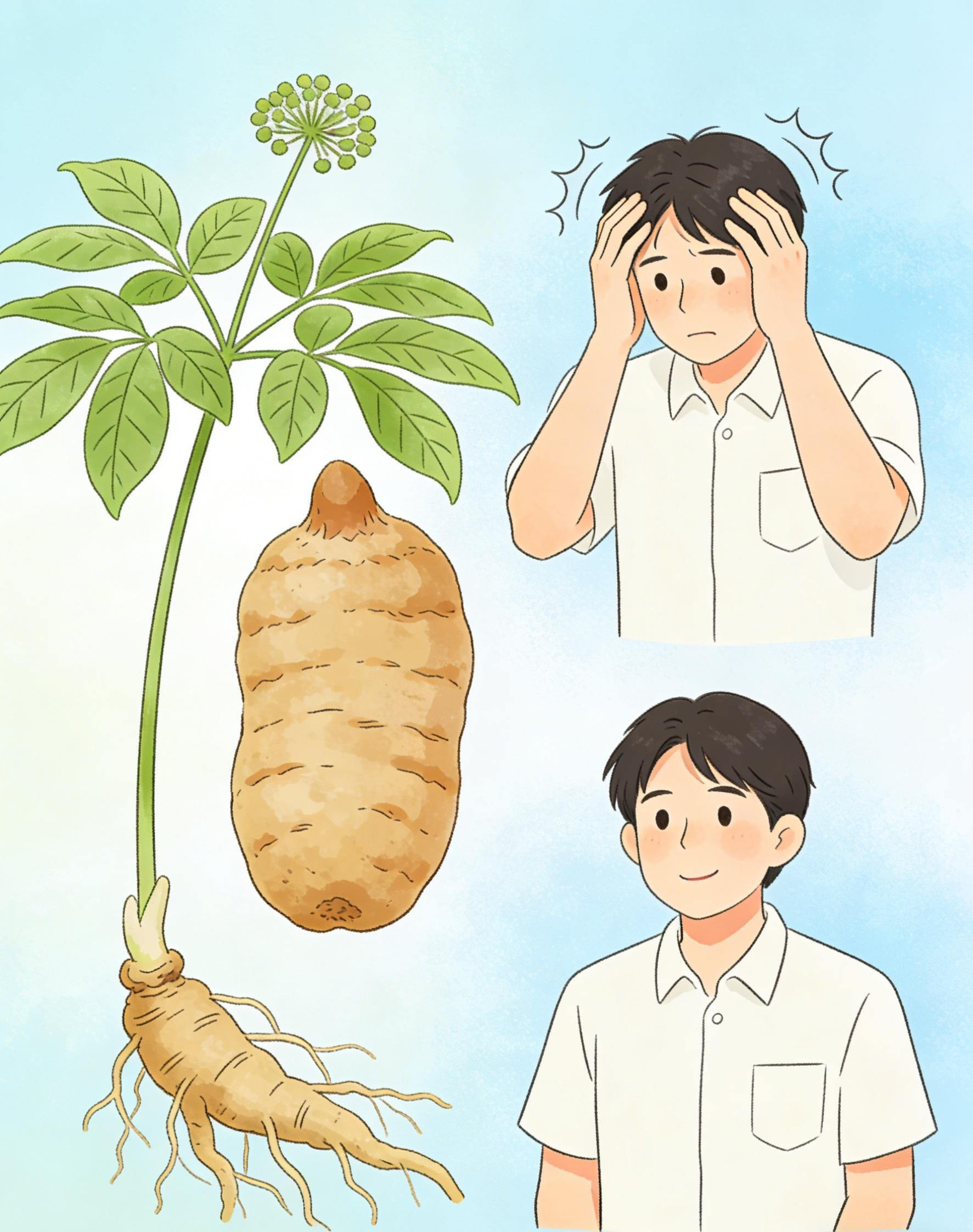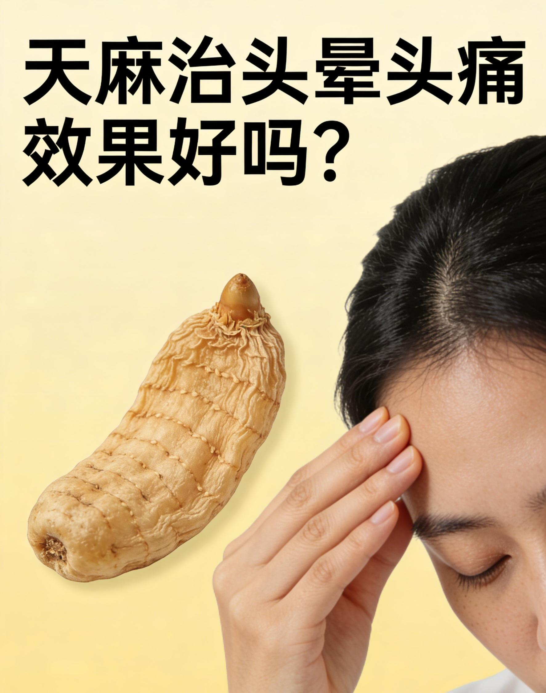 天麻治疗头晕头痛效果良好,尤其适合肝阳上亢型(常伴血压高、烦躁易怒)和风痰上扰型。它性平味甘,能平肝息风、通络止痛,对偏头痛、紧张性头痛、眩晕有较好疗效。
