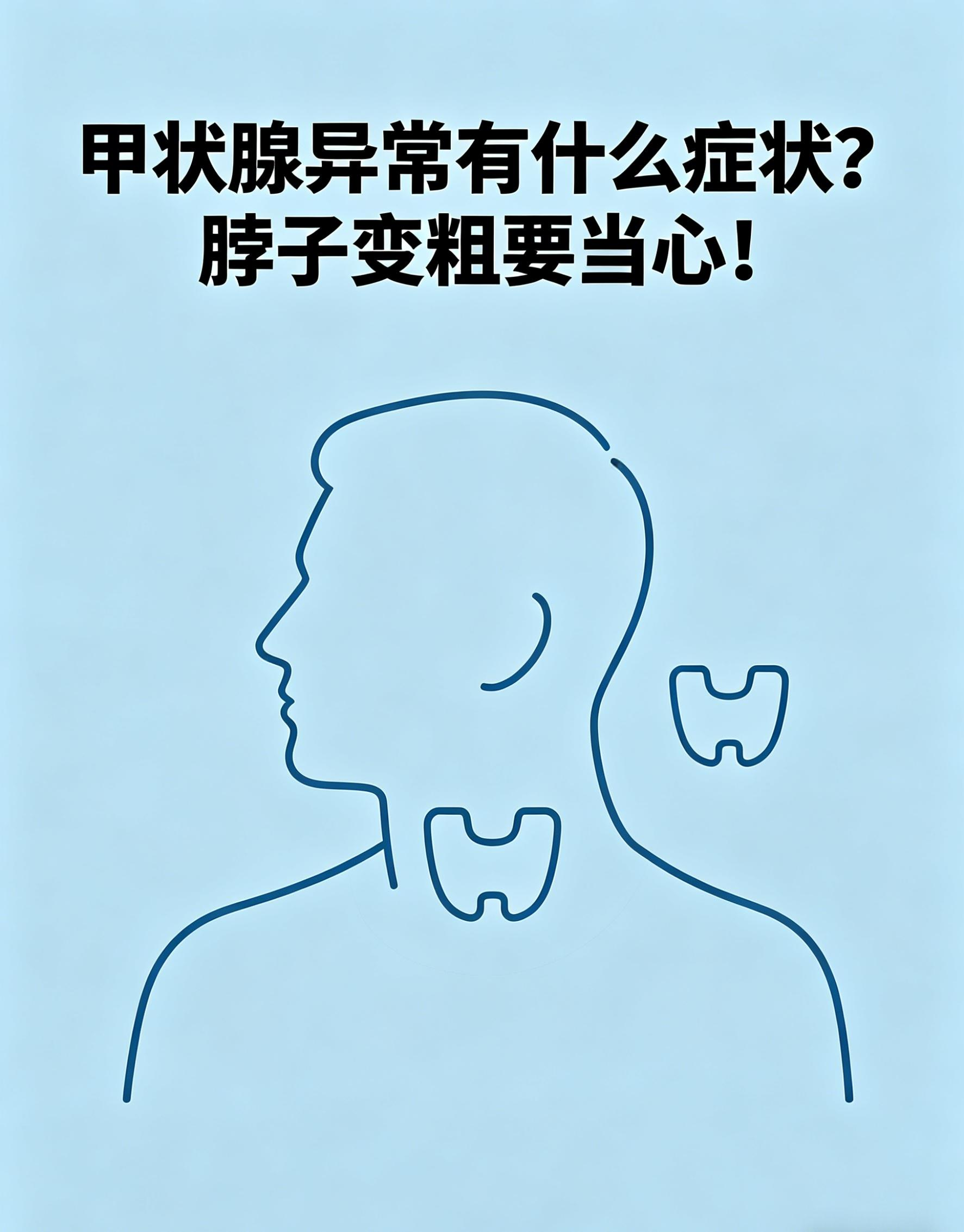 甲状腺异常症状包括颈部肿块、代谢异常、神经兴奋等,脖子变粗需警惕甲状腺肿或结节压迫。