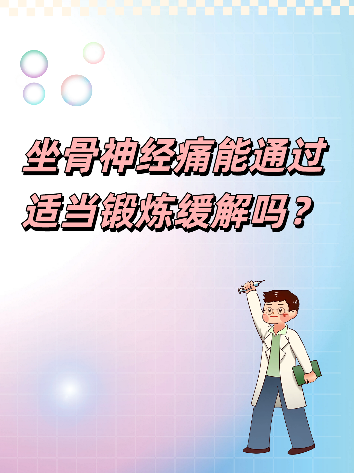 坐骨神经痛可以通过适当锻炼缓解,尤其是针对腰部和臀部肌肉的功能锻炼,能增强肌肉力量,减轻对坐骨神经的压迫。但锻炼需遵循“温和、适度”的原则,避免剧烈运动加重病情。