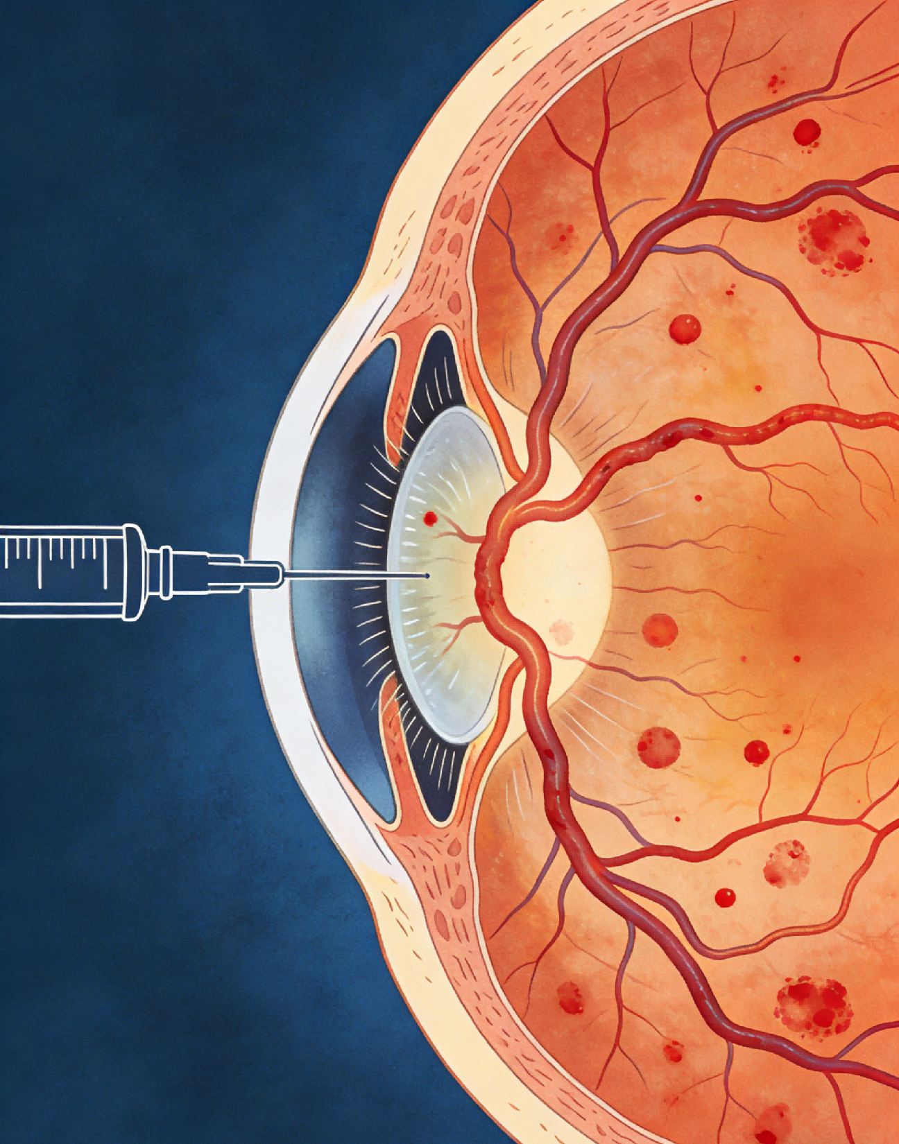 视网膜静脉阻塞是因静脉血管堵塞,导致眼底出血、水肿,引起视力下降。治疗的目标是减轻水肿、促进出血吸收、预防并发症。对于黄斑水肿,可通过眼内注射抗血管内皮生长因子药物缓解;对于缺血严重的患者,需进行激光光凝治疗,预防新生血管形成。