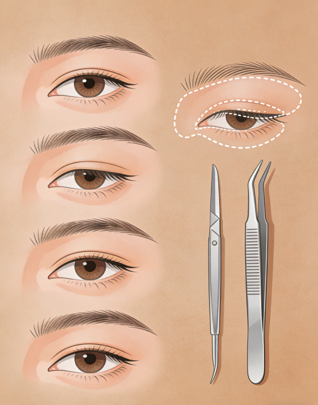 手术的目的是缩短上睑提肌,或利用额肌的力量提拉眼睑,恢复眼睑的正常高度。对于因重症肌无力、神经系统疾病等引起的继发性眼睑下垂,需先治疗原发病,再评估是否需要手术。