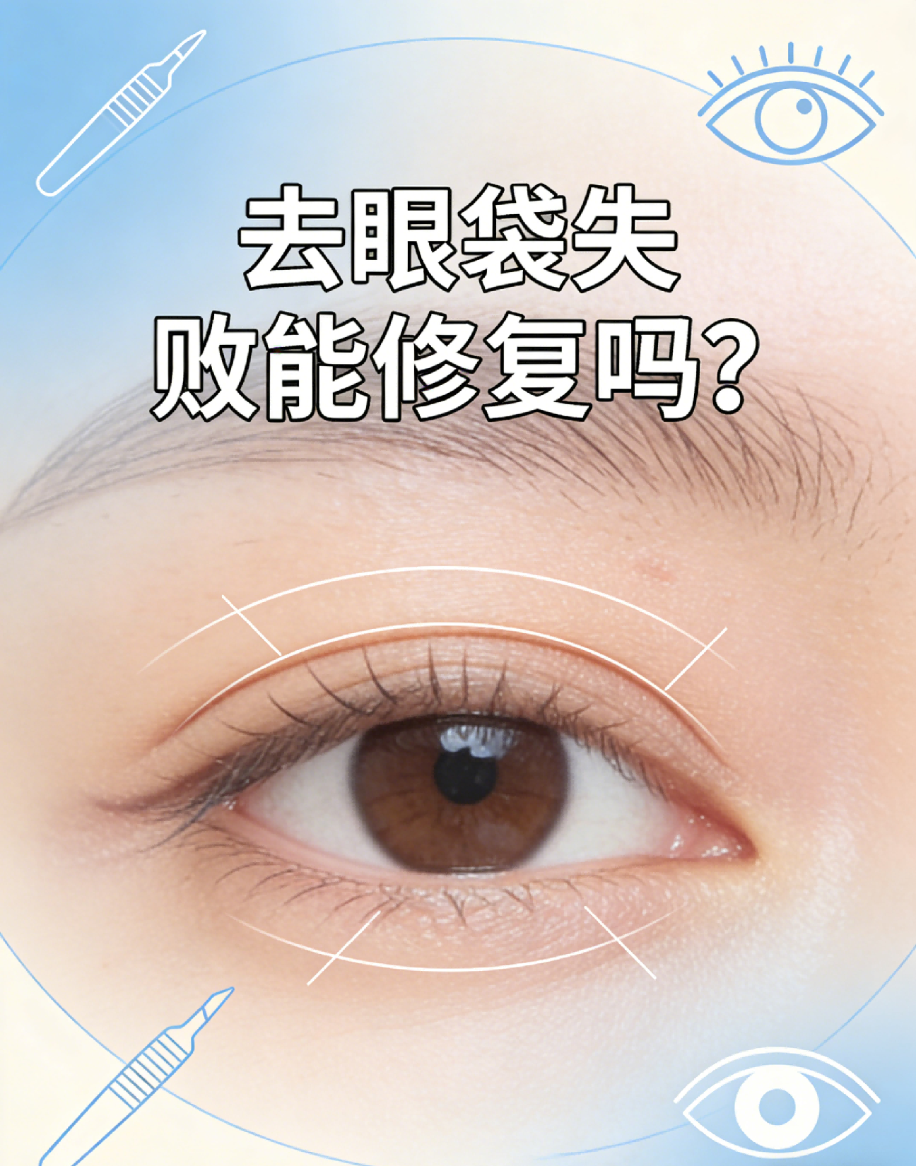 常见失败情况如眼袋残留、局部凹陷、双眼不对称、轻微眼睑外翻、疤痕明显等,多数可通过二次修复调整脂肪量、收紧皮肤、改善眼部形态。修复时机一般在术后3—6个月,等局部组织完全稳定后再进行。