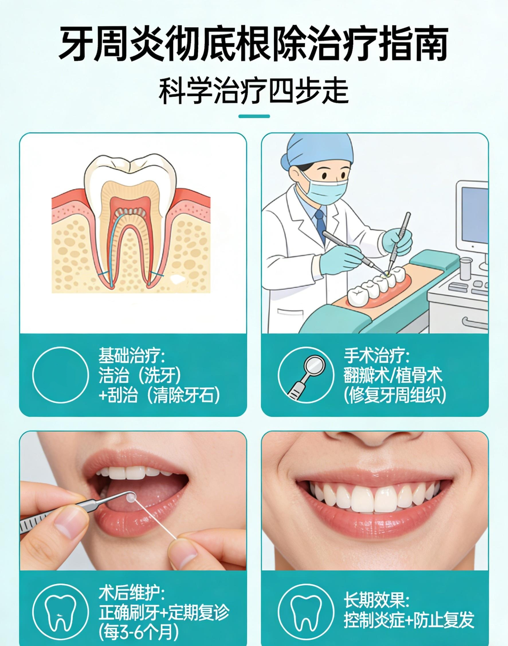 3.手术治疗:对于严重牙周炎,手术修复受损牙周组织。