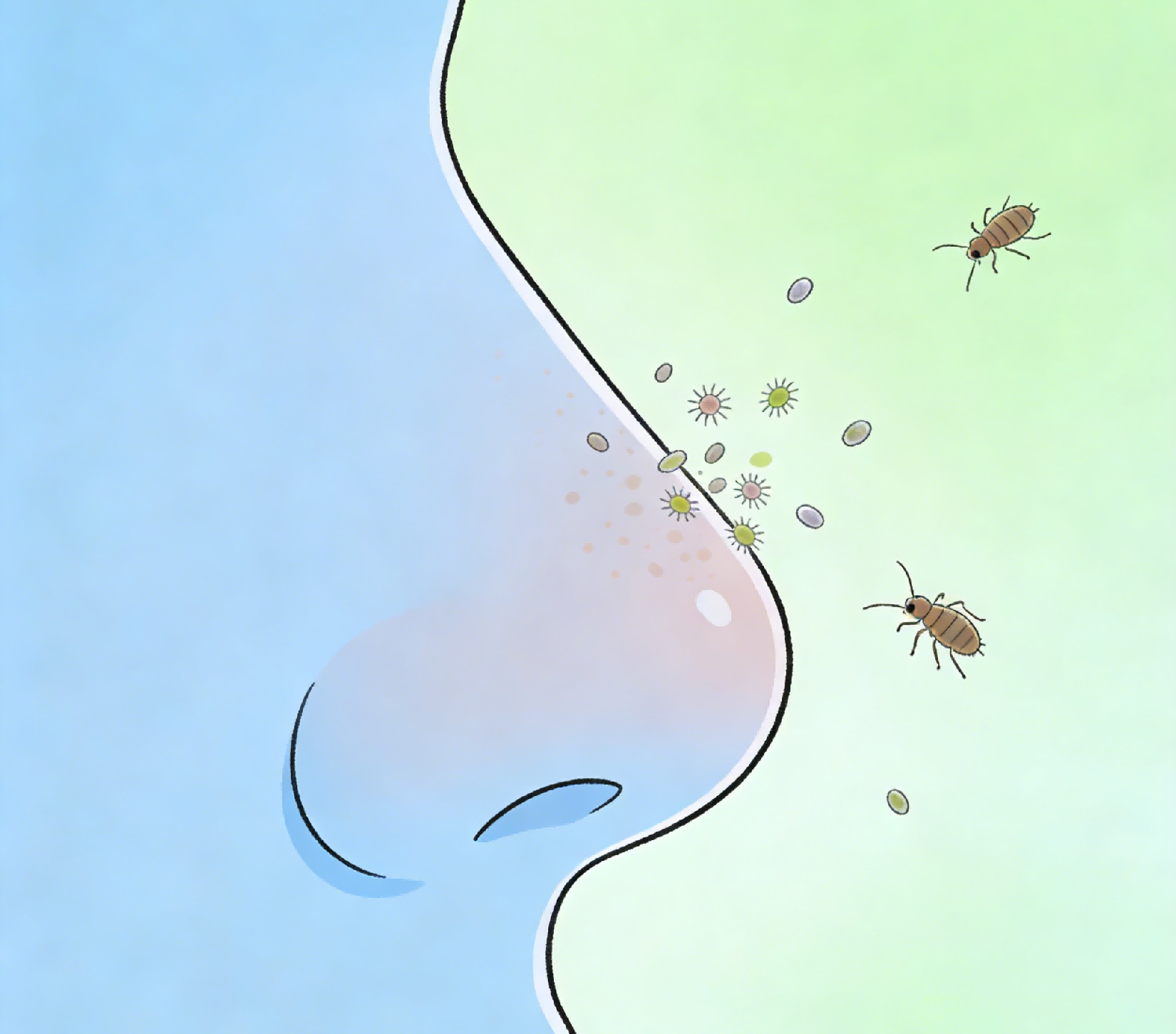 3、环境刺激:冷空气灰尘烟雾异味等,瞬间刺激黏膜引发反射性喷嚏。