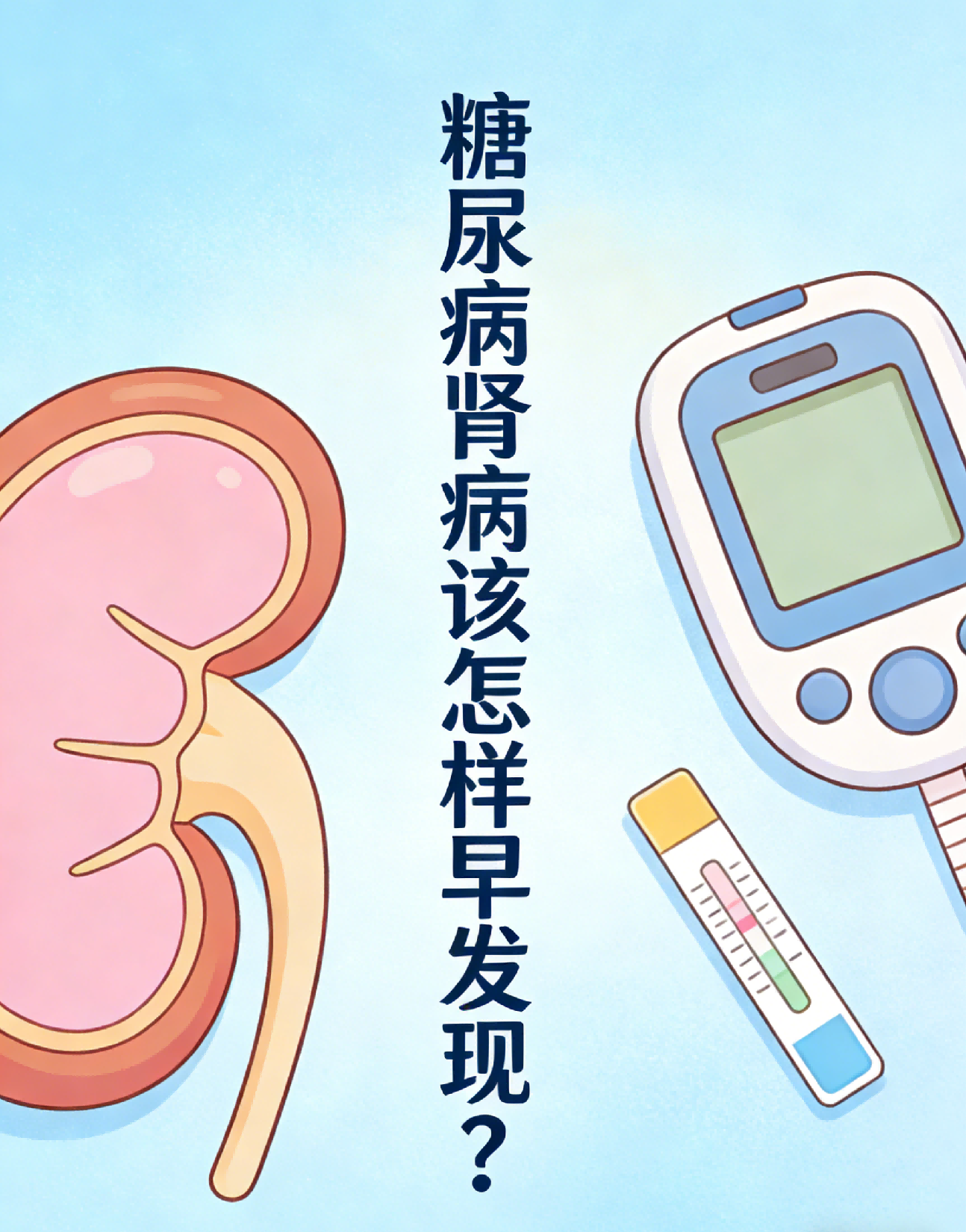 定期监测是早发现的核心,糖尿病患者(尤其是患病5年以上者),每年至少要检查一次尿常规、尿微量白蛋白定量、肾功能,这是发现早期糖尿病肾病最敏感、最有效的方法,能及时发现尿蛋白异常,捕捉肾脏损伤的早期信号。