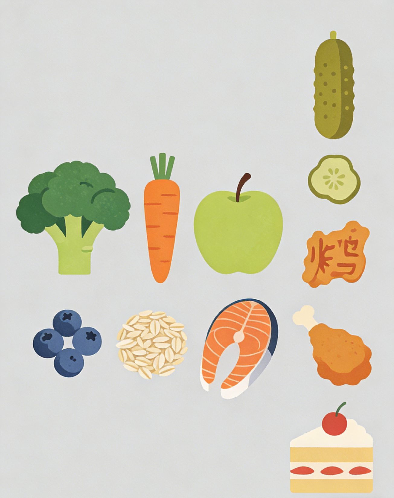 2、低糖高纤维:控制甜食、精制主食摄入,避免血糖升高;多吃蔬菜、水果、全谷物、豆制品,补充膳食纤维,促进脂代谢,预防便秘。