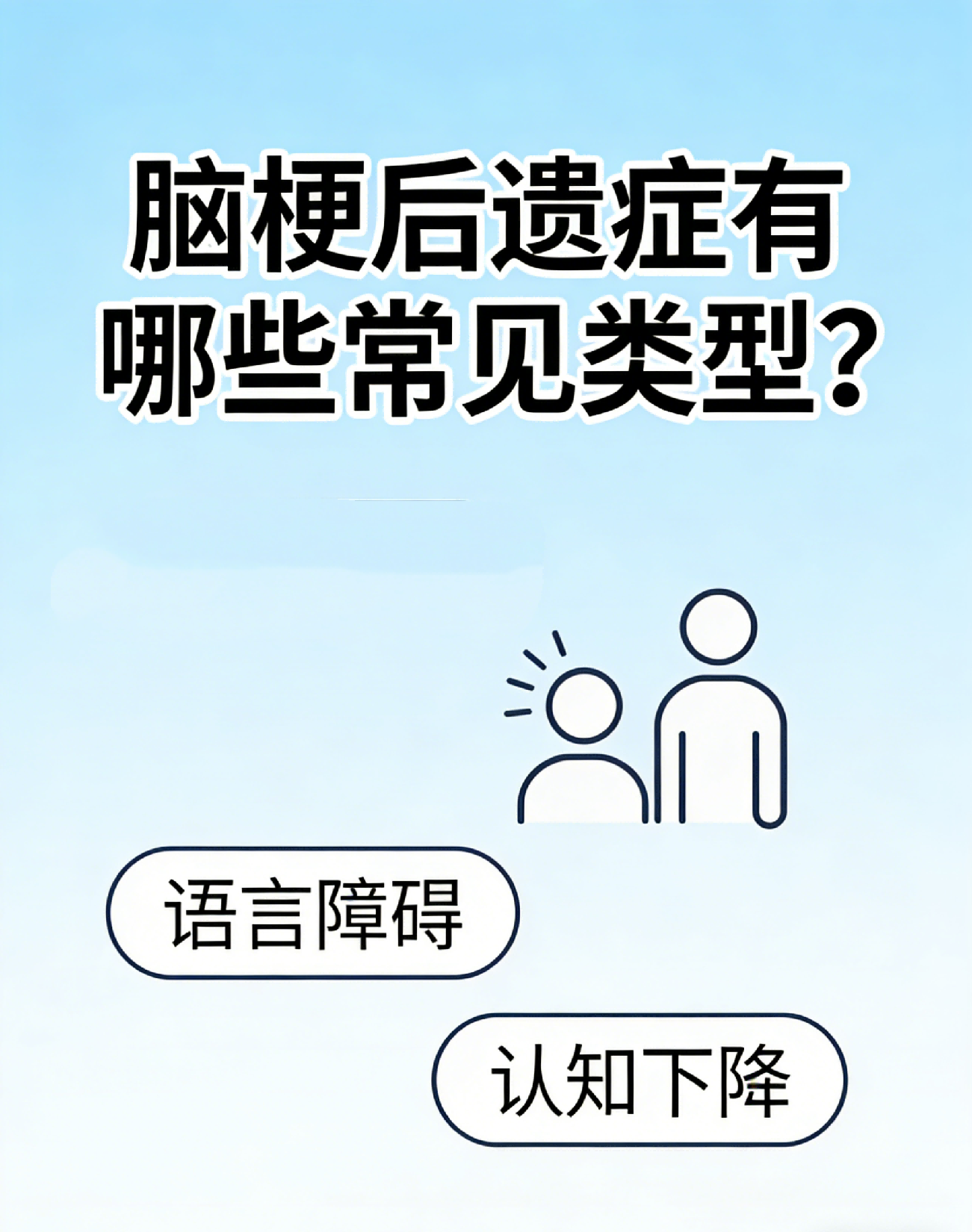 2、语言与吞咽后遗症:失语(运动性失语、感觉性失语)、构音障碍(说话含糊不清),吞咽困难、饮水呛咳,影响进食和交流。