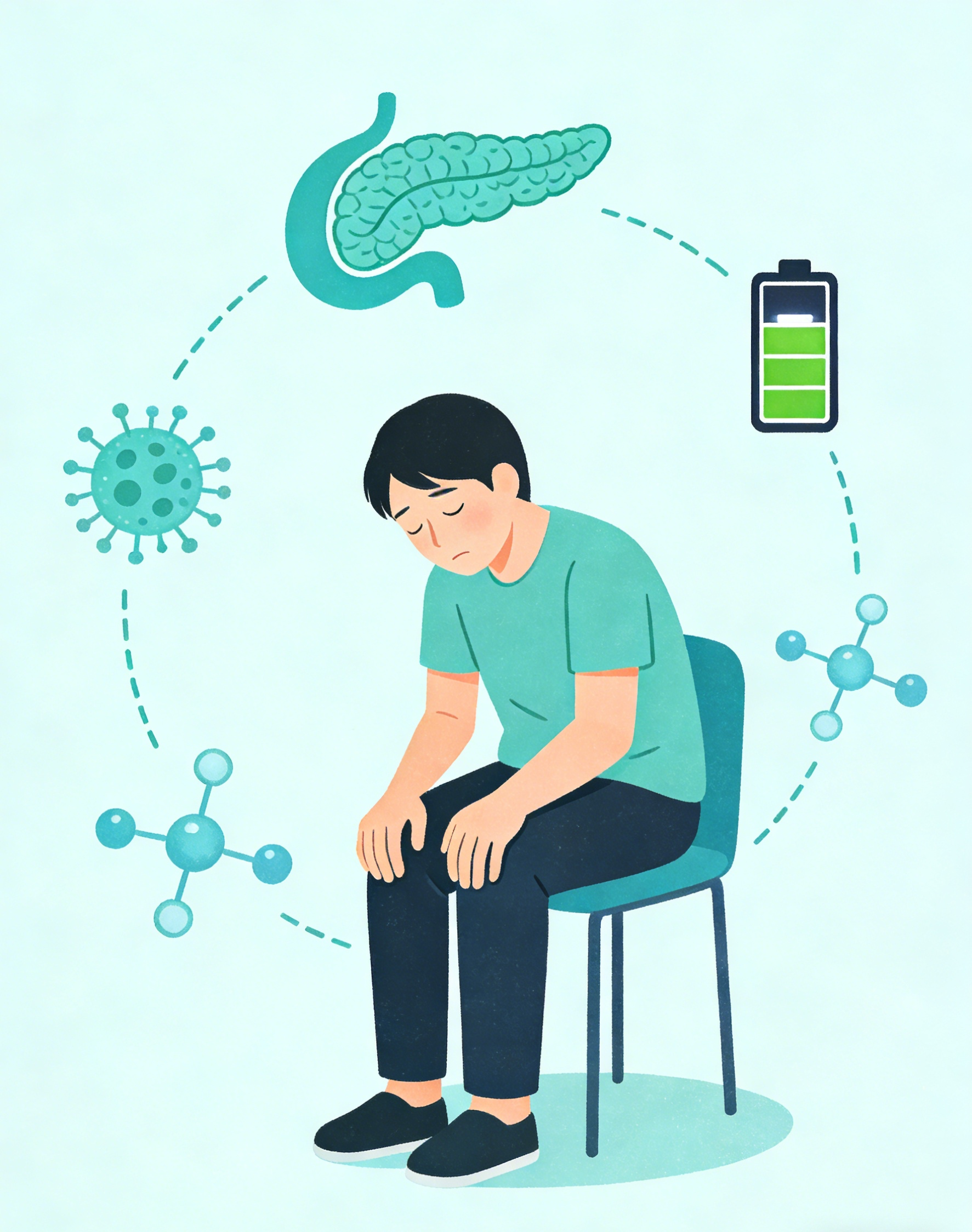 糖尿病患者乏力主因是葡萄糖无法有效进入细胞供能,身体处于“能量饥荒”状态,兼有代谢紊乱影响。